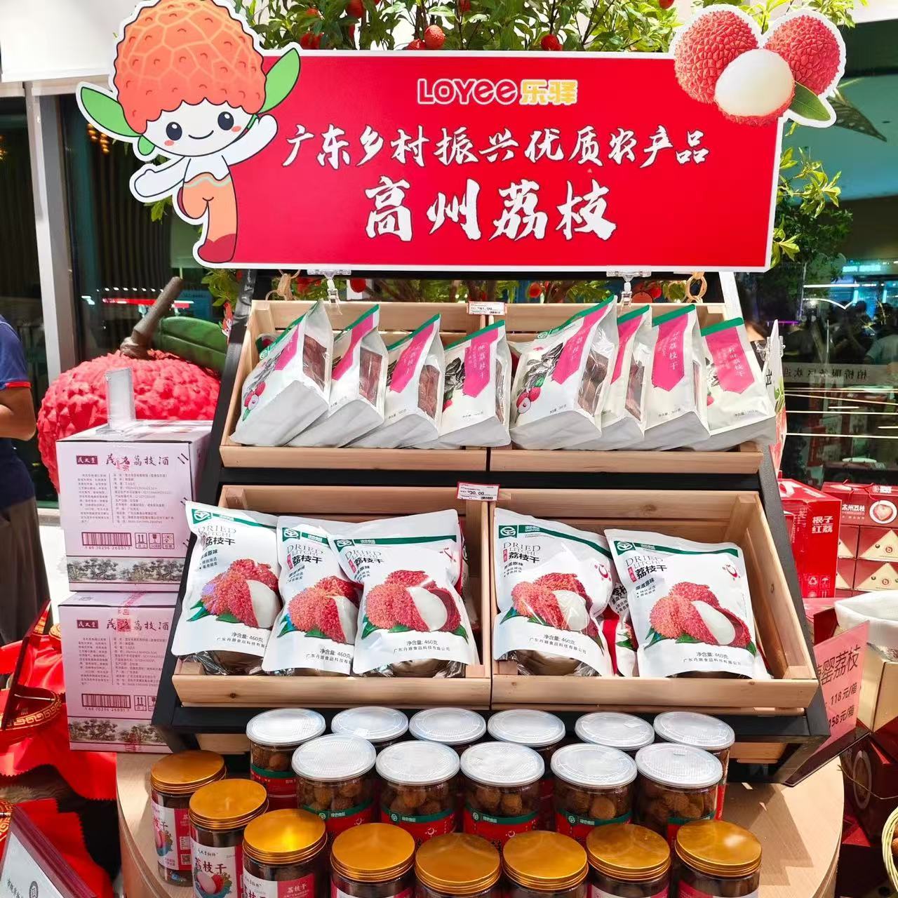 在包茂高速柏桥服务区内,各种茂名特色产品整齐摆放,浓浓的烟火气扑面而来,而最受吸引的,是一家茂名荔枝干、龙眼干系列产品摆满货架,成为受追捧的“广货”。